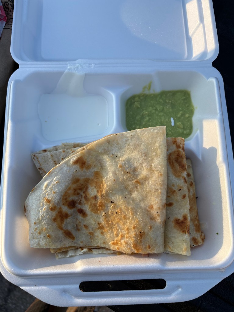 My two boys love the ham and cheese quesadilla. It comes with sour cream and guacamole to dip.