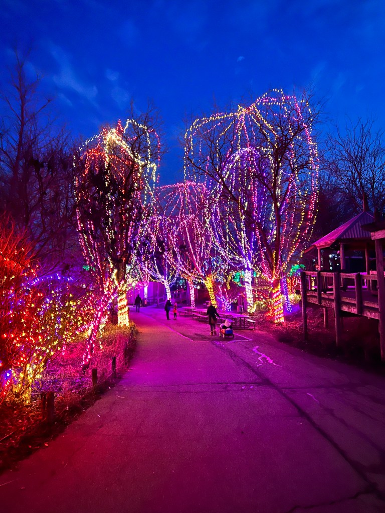 It’s not the holidays without a visit to the Wild Lights! The Zoo offers a beautiful and detailed display of lights throughout the park. They are simply wonderful to see. In the middle of the park is the pond, that is decorated with lights that sequence to themed music.