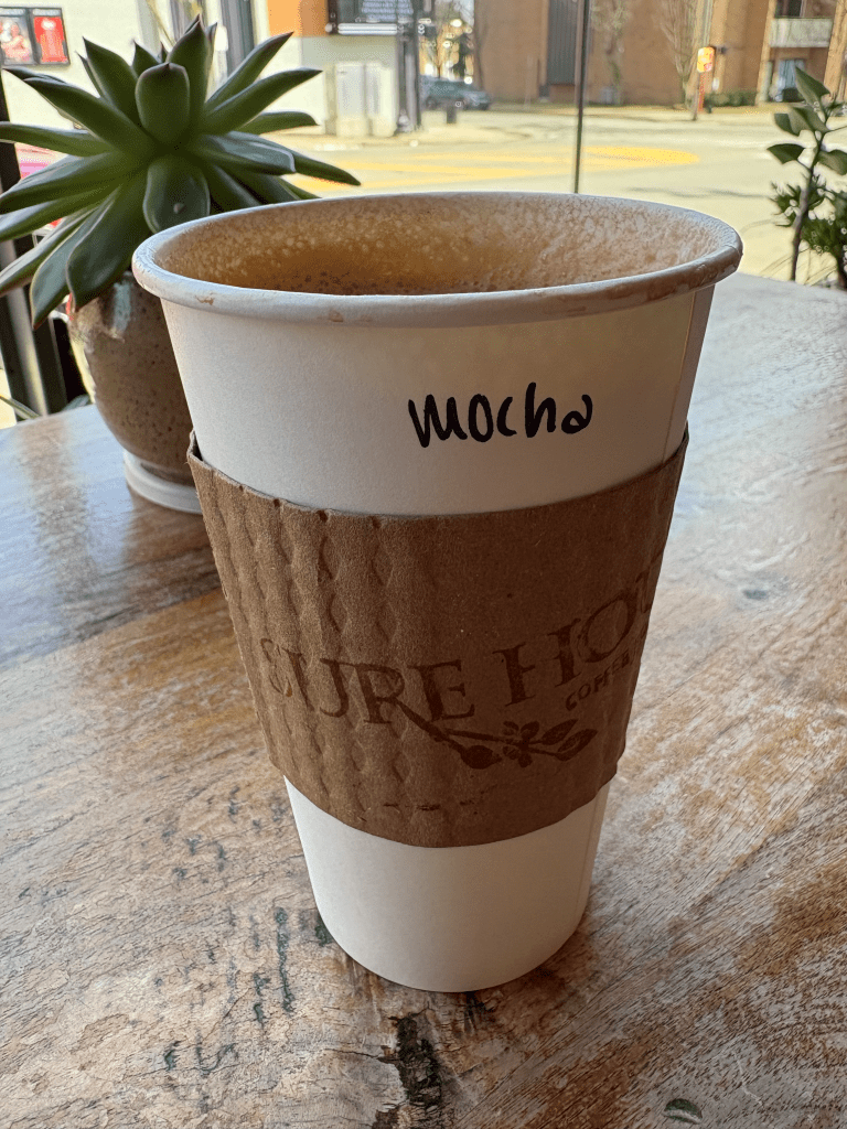 While I love a good classic Cafe Au Lait and regular Latte, but my favorite is the River Road Mocha. This location is a great place stay and read or work while you enjoy your drink and one of their breakfast items or pastries.