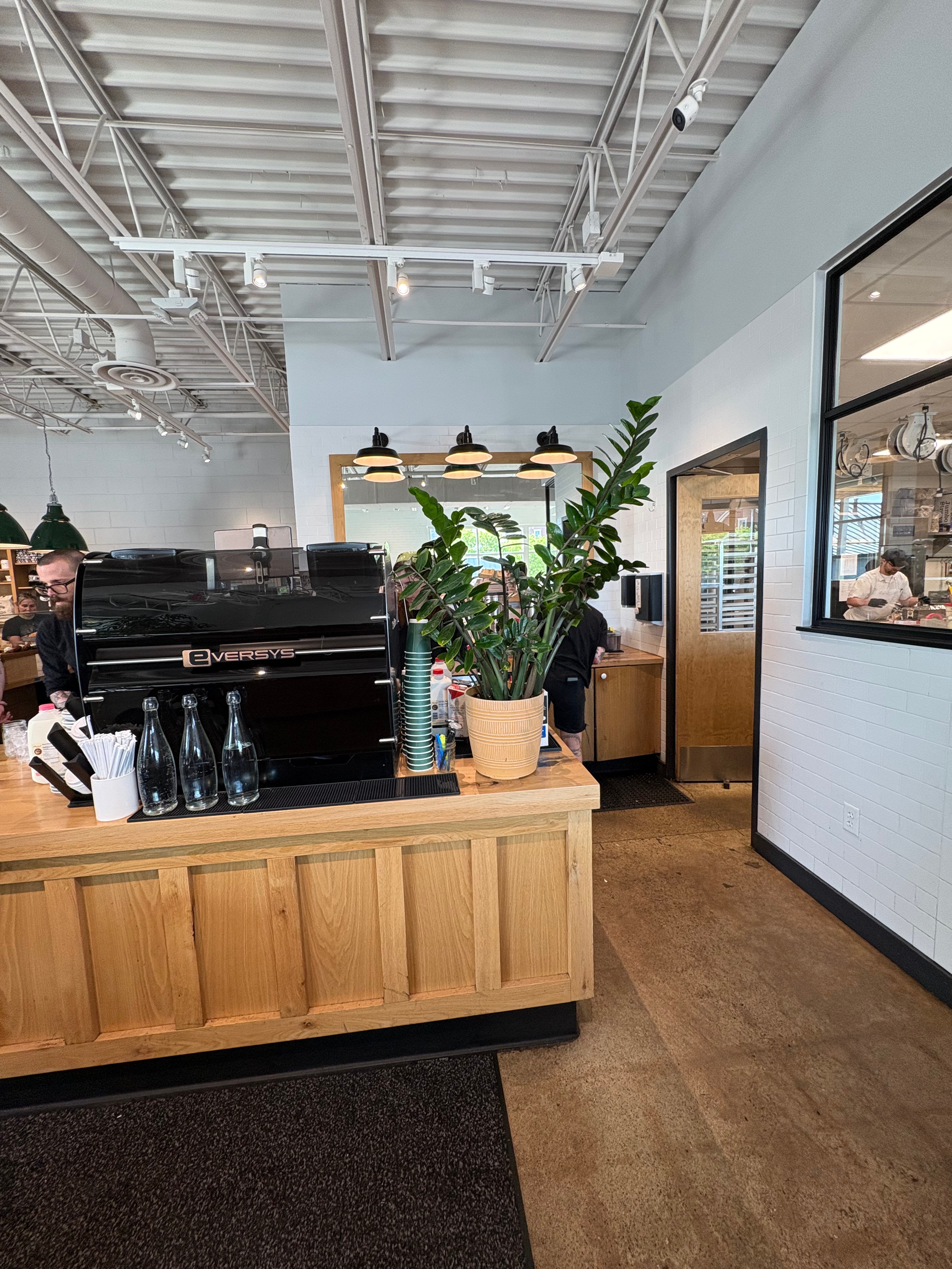 This location was originally a bank that has now been transformed to a cute and cozy coffee shop space.